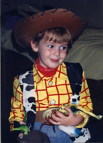 - Dressed as Woody, one of her favorite movie characters from Toy Story. Accompanied by some of her favorite dinosaurs.