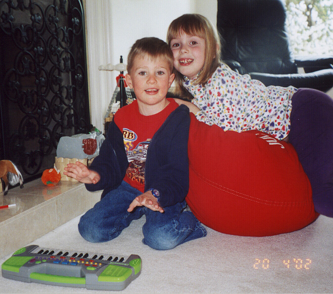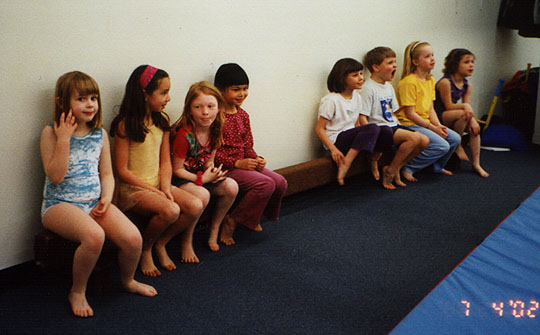 - Sixth birthday party at Little Gym. Group photo (L-R: Julia, Sarah, Anne Mae, Tally, Katie, Scotty, Emily, Kate); On the Tram; Birthday Girl 1 and Birthday Girl 2; April 2002.