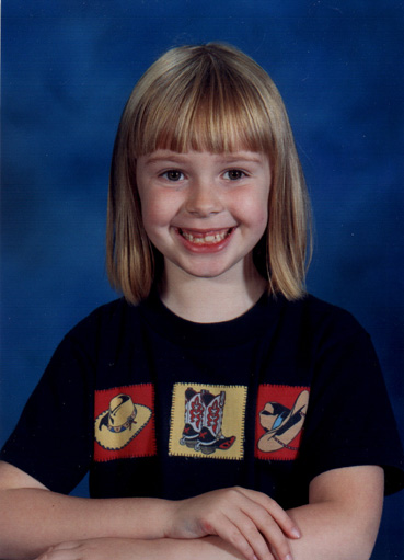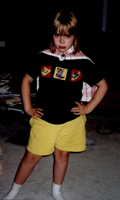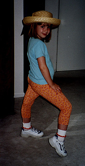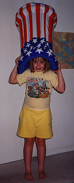 - She loves to pose using all kinds of props--wearing a hat and as a fearless and tough super hero. September 2002.