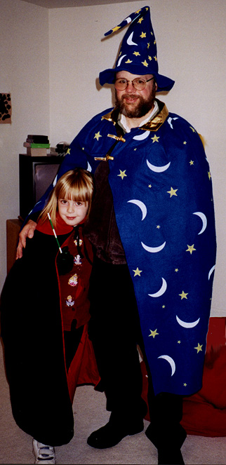 - Halloween with Hermoine, a wizard and their jack o'lantern. October 2002.