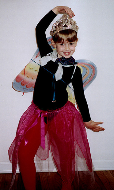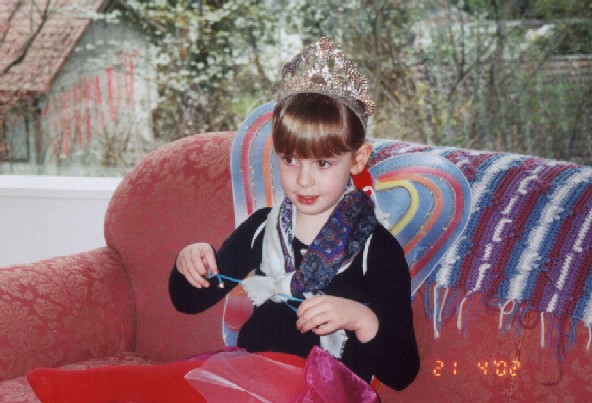 - Playing dressup is one of Julia's favorite activities especially when dancing, wearing wings or a crown or with ponies. April/May 2002.