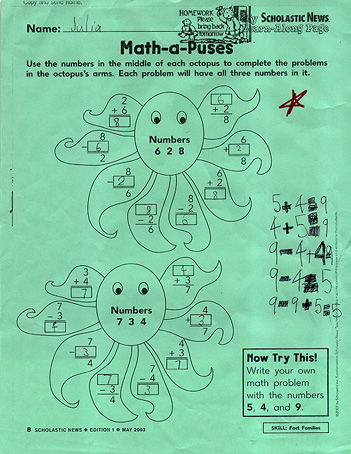 - Assignment in mathematics. Note the equations to the right--at age 7.